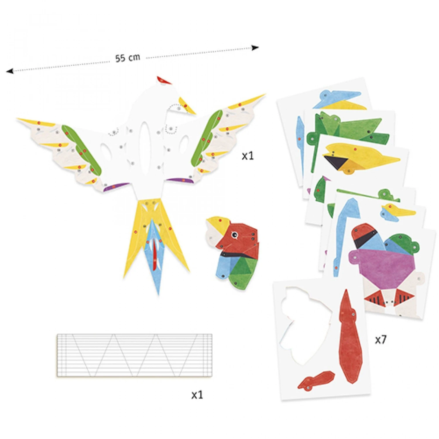 Fleur de (kinder)kamer op met deze prachtige gekleurde vogel. Wederom een uniek knutselwerkje van Djeco. Druk de verschillende details uit de voor gestanste vellen en vouw ze op de juiste manier. Wanneer ze je allemaal op de vogel geplakt heb ontstaat er een prachtige 3D poster.