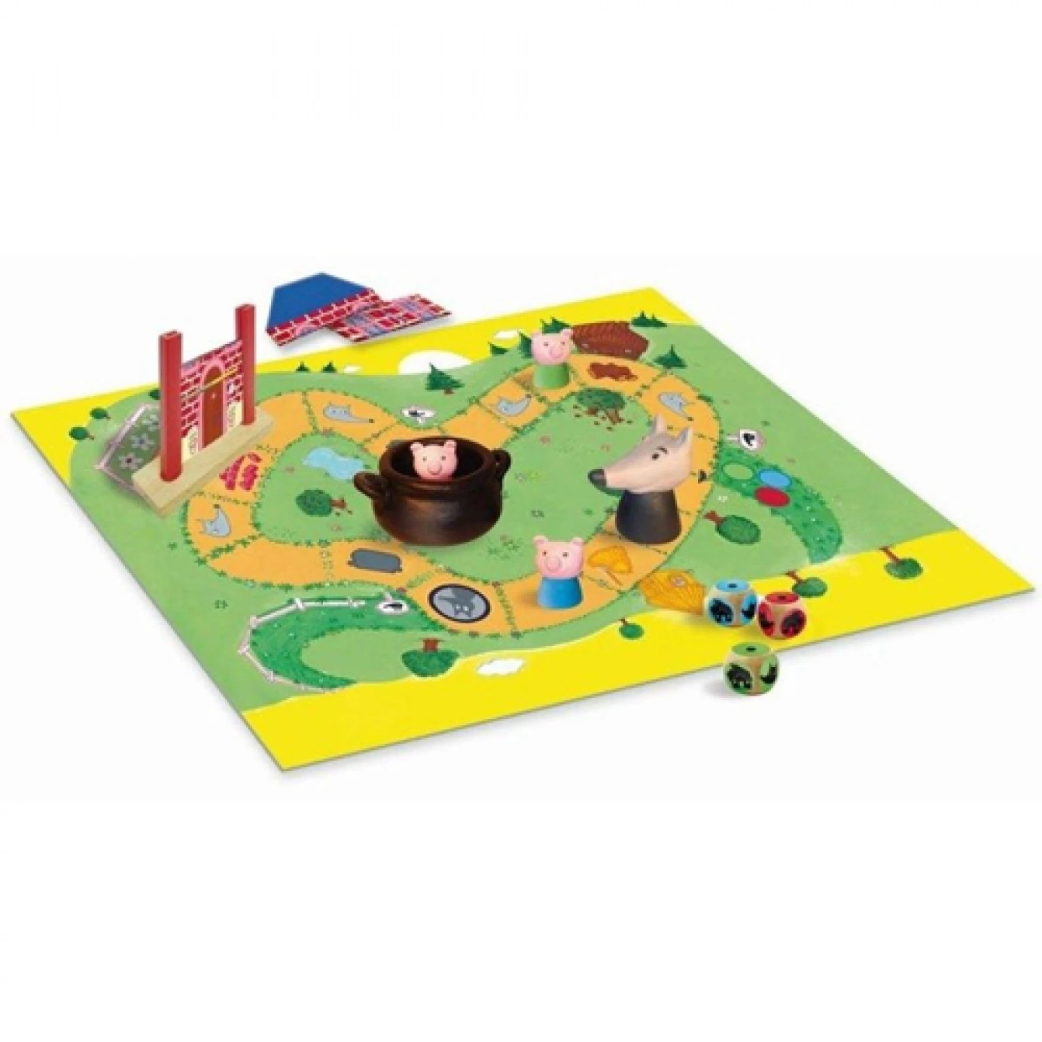 Woolfy is een spannend bordspel van Djeco waarbij kinderen moeten samenspelen om te kunnen winnen van de boze wolf! De spelers moeten samen een bakstenen huisje bouwen waar de biggetjes in kunnen schuilen voordat de wolf ze pakt en in de kookpot stopt!