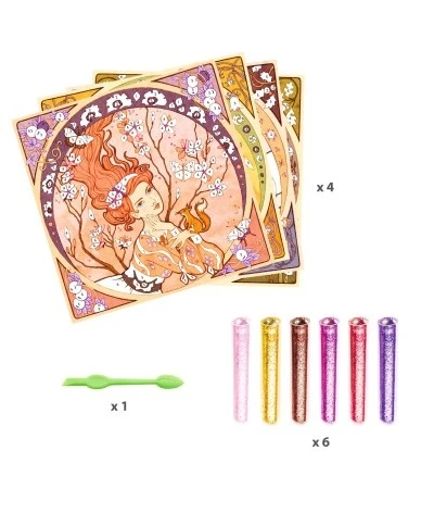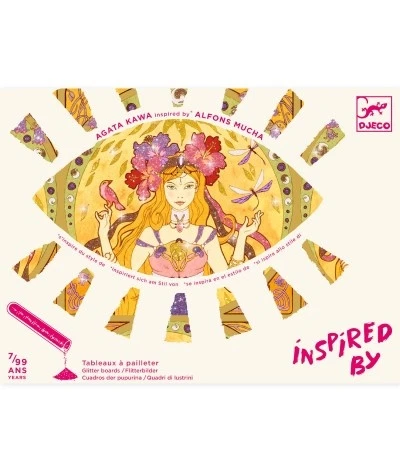 Djeco maakt speelgoed en knutselspullen welke origineel en educatief is. Dit knutselpakket is geïnspireerd door de Jugendstil kunstenaar Alfons Mucha waardoor kinderen kennis kunnen maken grote Meesters.