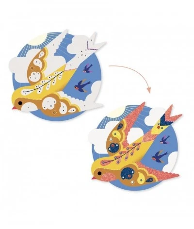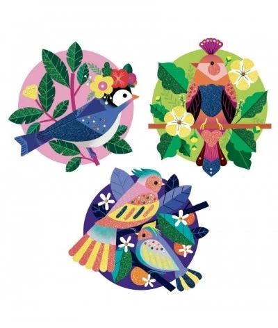 Paradijsvogels zijn van zichzelf al mooi, nadat je klaar bent met dit knutselwerkje zijn ze prachtig! Een betoverend knutselwerkje van Djeco voor kinderen vanaf 6 jaar met prachtig resultaat. Met deze knutselset maak je 4 verschillende prachtige schilderijtjes vol glitters. De kartonnen afbeeldingen zijn voorgedrukt met een sticker laag die per nummer verwijderd kan worden.