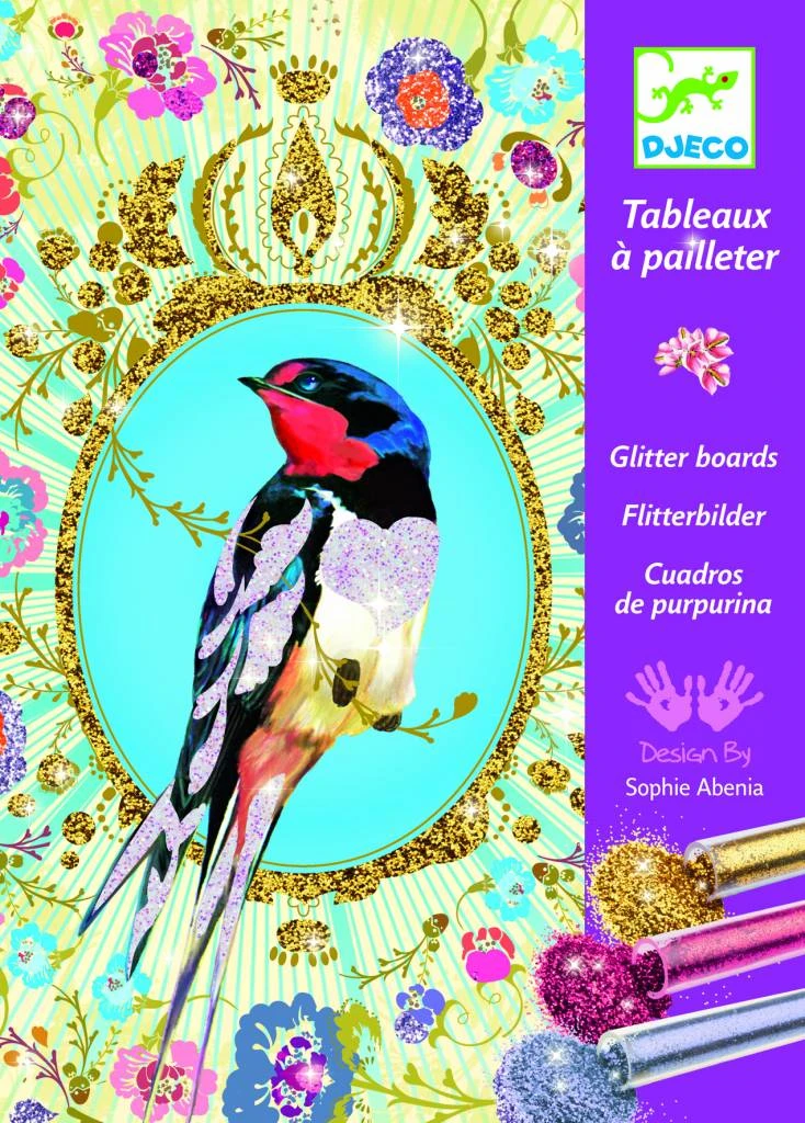 Prachtig knutselwerkje voor kinderen vanaf 7 jaar. Wanneer je met het speciaal bijgeleverde pennetje een stukje papier van de kaart verwijderd kun je er glittertjes op strooien. Wanneer je klaar bent ontstaat er dan een prachtige glittervogel. Hang ze op in de kinderkamer en je kunt er eindeloos van genieten!
