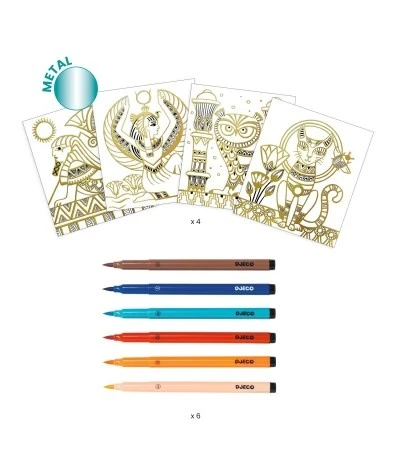 Deze kleurplaten van het Franse merk Djeco met Egypte thema zijn ideaal voor artistieke kinderen. De kleurplaten zijn voorzien van verhoogde gouden glitter randjes waardoor het gemakkelijker is om binnen de lijntjes te kleuren.