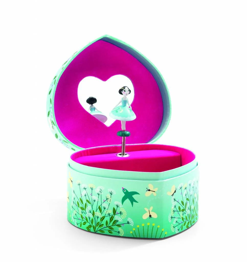 Dit muziekdoosje in de vorm van een hart bewaart al je juwelen en kostbaarheden. Wanneer je hem aan de achterkant opwindt danst het schattige meisje rondjes op de muziek.