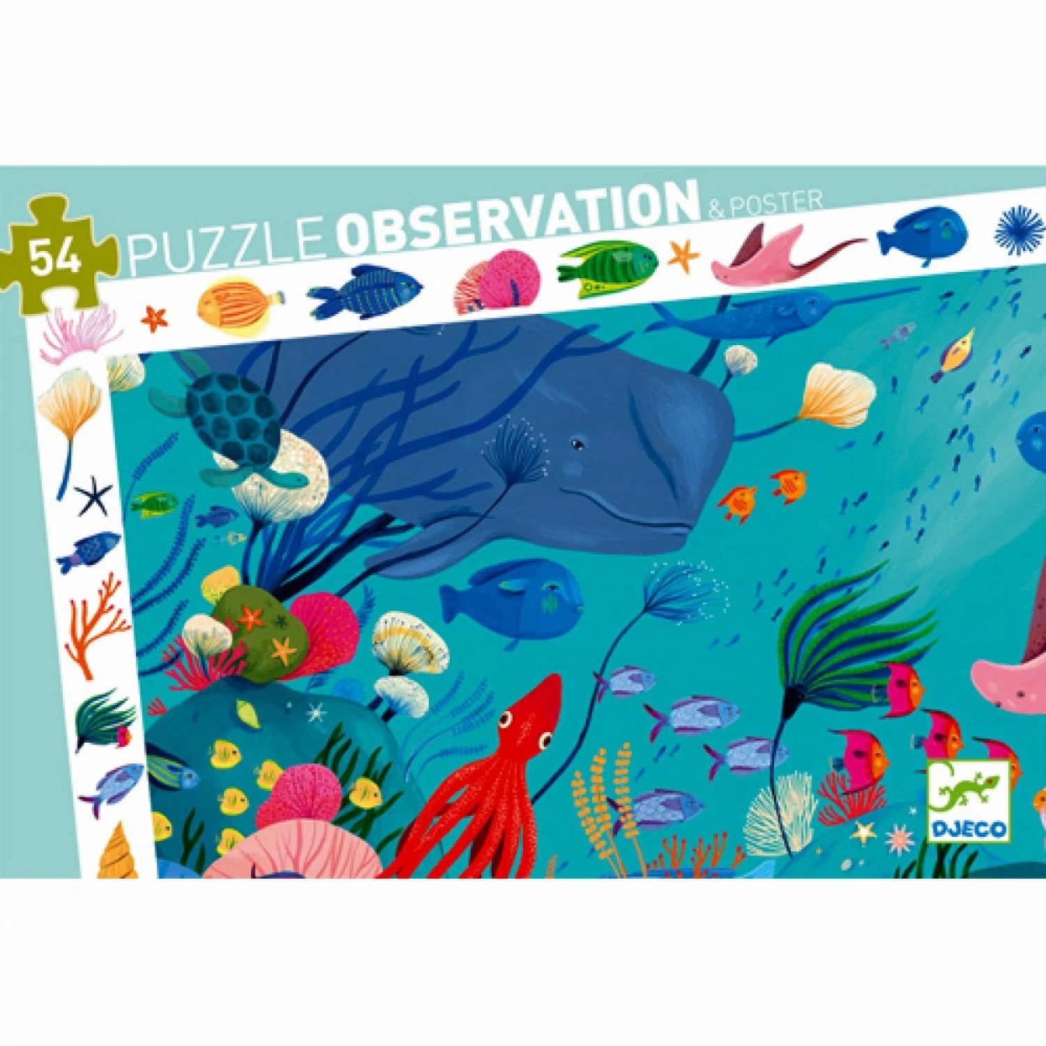 Is het een puzzel of een schilderij? Er is zoveel te zien op deze prachtige puzzel van Djeco. Hij staat vol met prachtige onderwaterdieren en planten. De puzzel heeft een witte rand met verschillende objectie die terug te vinden zijn in de puzzel. Ook zit er een poster bij op ware grootte zodat je de puzzel hier eventueel op kan leggen om hem te maken.