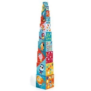 Deze mooie stapelblokken van Djeco zijn van stevig gelamineerd karton en hebben een vrolijk strand thema. De stapelblokken bestaan uit 10 mooie gekleurde kubussen. Op de 5 zijden van de kubus staan verschillende dieren op het strand, in de zee en de getallen van 1 tot 10.