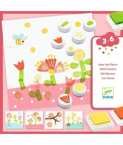 Leuke stempelset van Djeco met als thema bloemen. Breng de bijgeleverde geïllustreerde kaarten tot leven door prachtige bloemenvelden te maken. Gegarandeerd speelplezier.