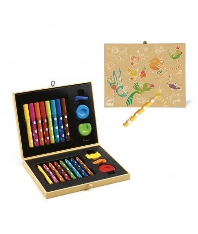 Deze prachtige kartonnen tekendoos van het Franse merk Djeco is een must-have voor alle beginnende kunstenaars. De afbeeldingen op de doos kunnen ook ingekleurd worden zodat ieder kind er zijn eigen unieke tekendoos van kan maken.