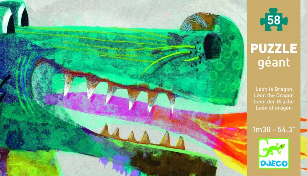 Deze puzzel is alleen voor stoere kinderen! Wanneer je alle 58 puzzelstukken in elkaar puzzelt komt Leon de draak te voorschijn! Je hebt hier wel wat ruimte voor nodig, de puzzel is wel 138 cm breed.