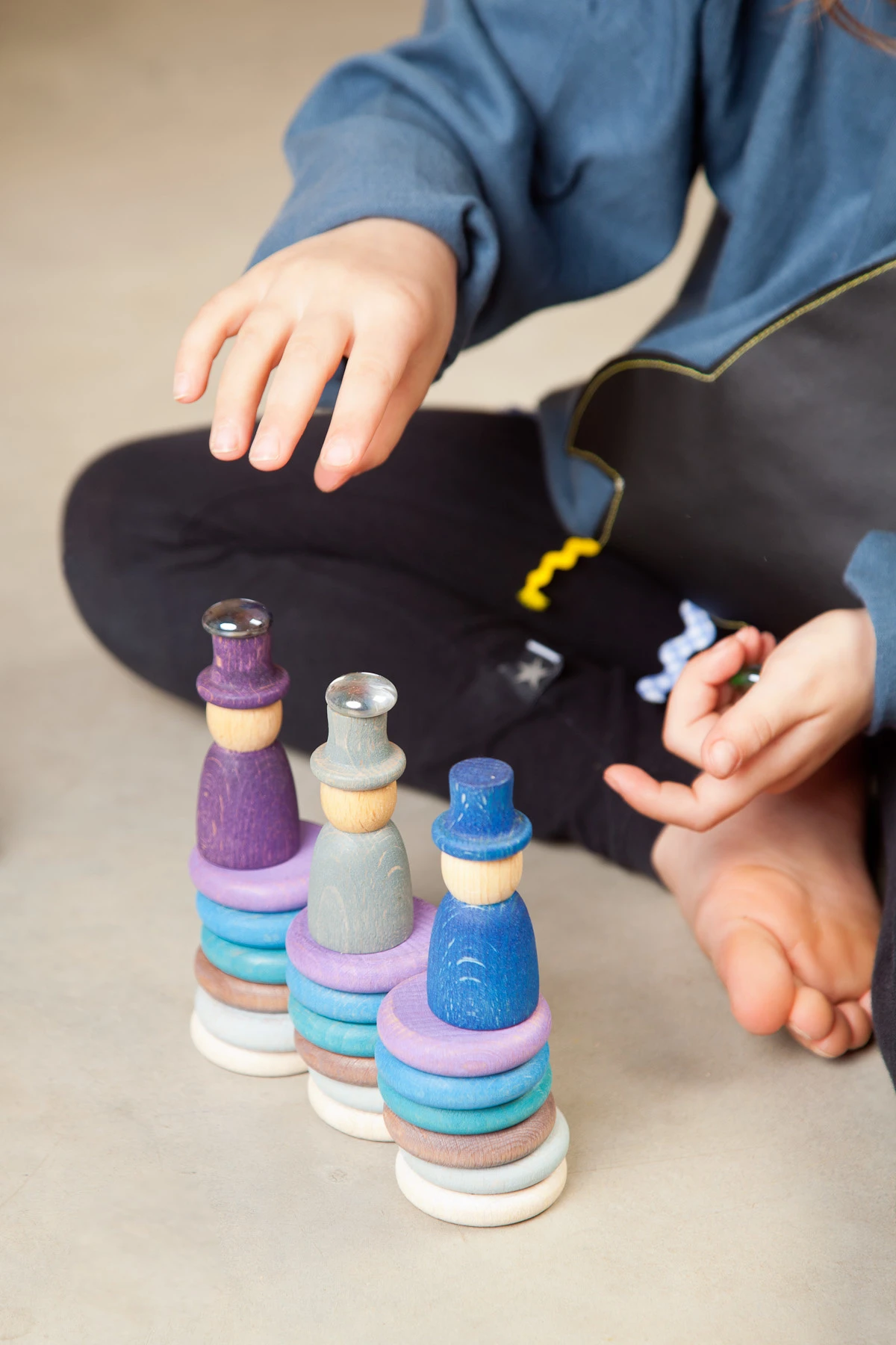 Wat kun je er allemaal mee doen? Je mag het helemaal zelf weten. Stapelen, sorteren, tellen of een wereld creรซren met de houten poppetjes. De mogelijkheden zijn eindeloos.