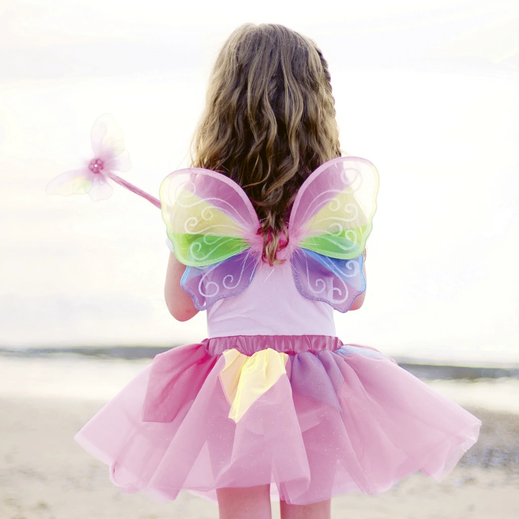 Regenbogen zijn magisch, net als dit verkleedsetje! Met de vleugels op je rug en de toverstaf in je hand kan de magie beginnen, wat tover jij als eerste tevoorschijn?