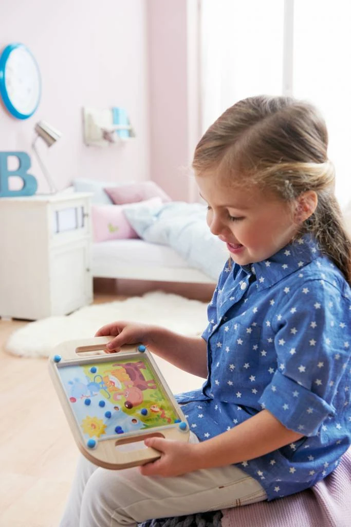 De dieren gaan op elkaar staan en vormen zo een piramide! Dat verloopt allemaal wat wankel, vooral voor de kleine muis. Wie kan hem helpen om zeepbellen te blazen, en de knikkers in de kuiltjes laten rollen?