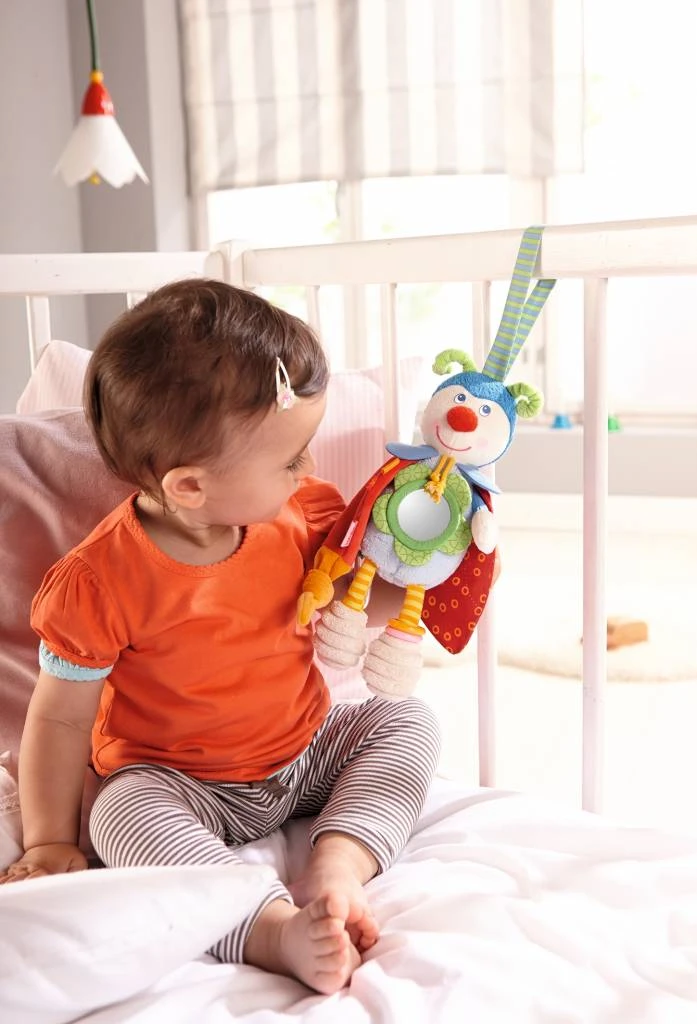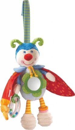 Als deze kakelbonte kever komt aangevlogen, is een goed humeur verzekerd! De vele verschillende kleuren en vormen nodigen uit om te onderzoeken. En daarbij komt nog een spiegel, een rammelaar en een bijtstuk. Daarmee heeft Juul alles wat baby’s nodig hebben om te spelen.