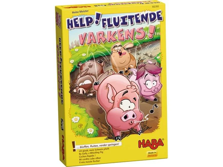 - Inhoud: 1 spelbord (3-delig), 4 houten varkentjes, 6 loopkaarten, 16 appelkaartjes, 1 handleiding.
