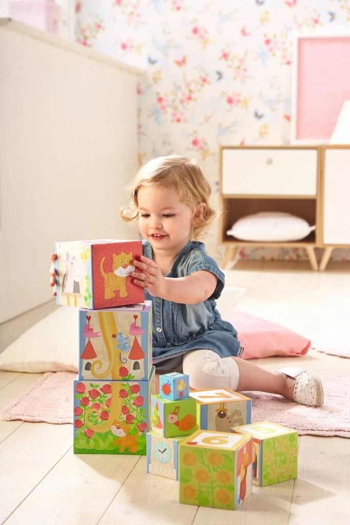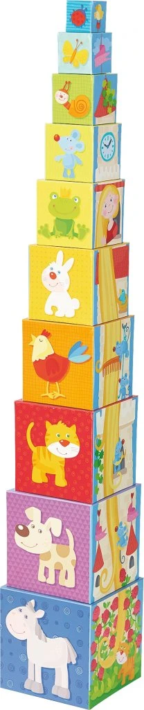 Hoe lang is Rapunzels haar echt? Dit kunnen kleine fans van sprookjes te weten komen door de blokken volgens grootte op elkaar te stapelen. Daarnaast valt er op de buitenzijden nog veel meer te ontdekken: liefdevol getekende dieren en bloemen. Bovendien leren de kinderen al spelend de getallen van 1 tot 10 kennen.