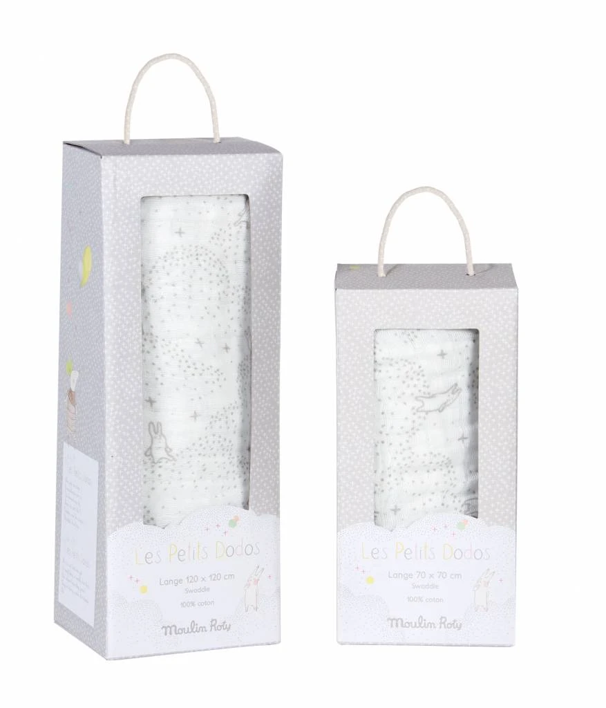 Deze hydrofiele doek is multifunctioneel en erg zacht. De must-have en favoriet van elke mama. De doeken zijn voor van alles te gebruiken; spuugdoek, handdoek, knuffeldoek en nog veel meer. Hij is prachtig geïllustreerd met een klein konijn dat op wolken loopt. De stof is zeer comfortabel en wordt bij elke wasbeurt zachter. Een zeer praktisch accessoire waarvan de zachtheid de baby zal troosten. Ook leuk om te geven als kraamcadeau.