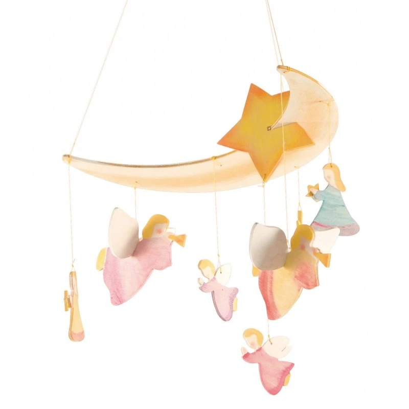 Wanneer deze engeltjes boven je vliegen weet je zeker dat je lekker zult slapen! Zoals elk product dat Ostheimer maakt worden ook de houten mobiles met veel liefde en zorg gemaakt en met de hand geschilderd.