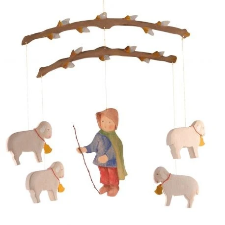 Dit herdertje is op zoek naar al zijn schaapjes. Ze rennen graag rondt zodat je kindje ernaar kan kijken! Zoals elk product dat Ostheimer maakt worden ook de houten mobiles met veel liefde en zorg gemaakt en met de hand geschilderd.