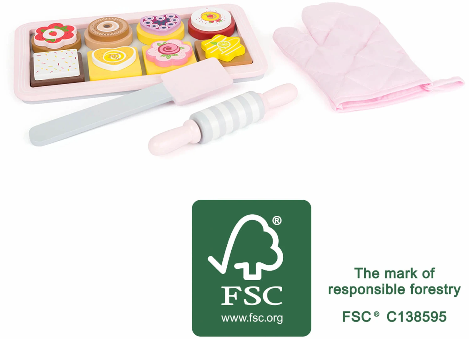 DING! De oven is klaar! Maar kijk uit en gebruik je ovenhandschoen want het bakblik is heet. De prachtige kleurrijke houten koekjes zijn om te watertanden. Wie nodig jij uit om ze op te eten?