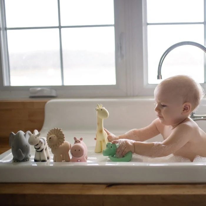 Het bijt- en badspeeltje Krokodil is onderdeel van de My First Zoo collectie van Tikiri. Leuk om mee te rammelen, op te bijten of mee in bad te nemen. Spaar ze allemaal en maak er een gezellige beestenboel van in bad! Ideaal als kraamcadeautje.