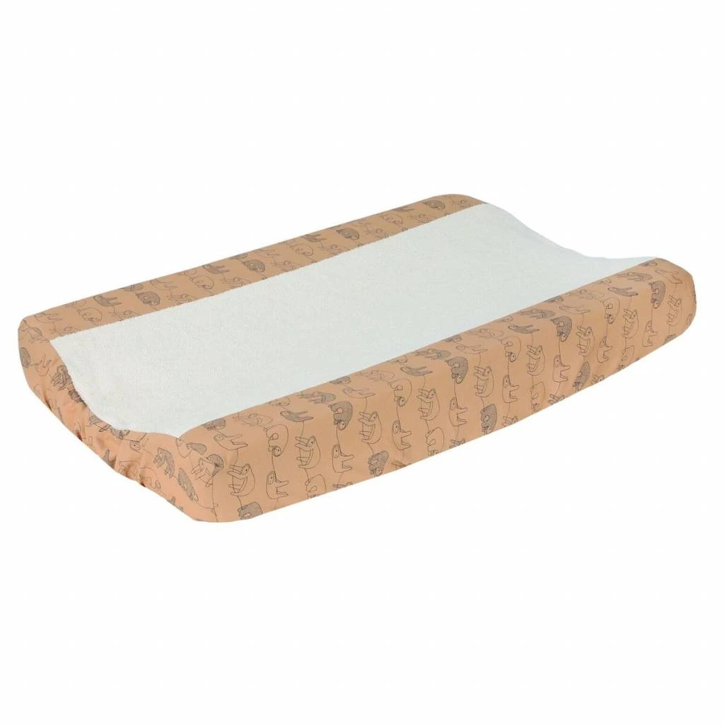 Luiers verschonen is nog nooit zo leuk geweest! De middenstrook is van zacht badstof waar je baby heerlijk zacht op ligt, de kekke print is van 100% katoen. De luiaards hangen vredig en door de neutrale kleur is deze collectie geschikt voor zowel jongens als meisjes.